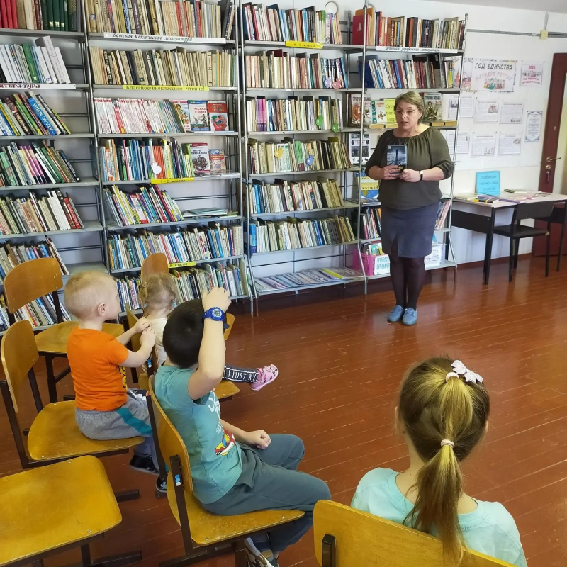 В библиотеку были приглашены воспитанники детского сада. Юных читателей ожидала увлекательная экскурсия, где они познакомились с историей создания книг и узнали, что библиотека — это особый дом, в котором хранятся книги. Дети вспомнили своих любимых литературных героев и приняли участие в викторине.