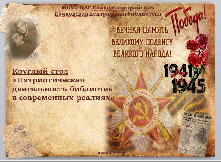 Специалисты Централизованной библиотечной системы Кочковского района стали участниками круглого стола «Патриотическая деятельность библиотек в современных реалиях». Профессиональное мероприятие, организованное в рамках 80-летия Великой Победы, сосредоточило значимый опыт работы по патриотическому просвещению.