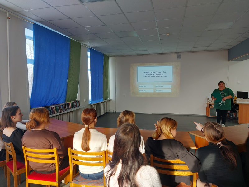 В рамках празднования Дня народного единства в Решетовской сельской библиотеке состоялся познавательный библиоквиз «Россия. Родина. Единство». Участники успешно справились со всеми заданиями квиза, продемонстрировав знание истории своей страны, ключевых событий, а также культуры и традиций народов России. К мероприятию была подготовлена книжная выставка «Народов много – страна одна!».