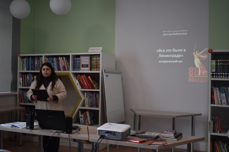После просмотра библиотекарь рассказала о книгах из фонда Детской библиотеки, герои которых уже пережили или только переживают события блокады.