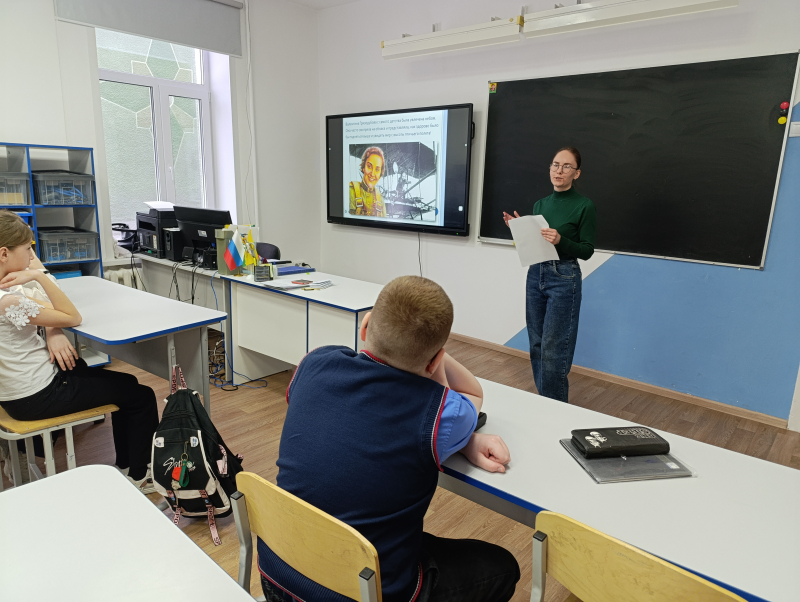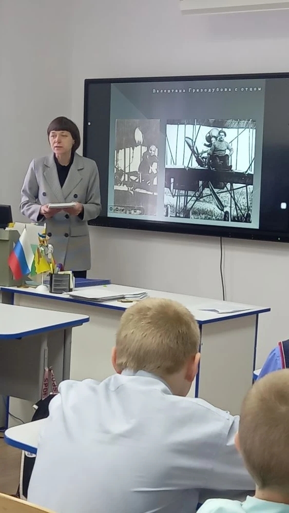 Ученики с интересом слушали рассказ ведущих о женщине, чья жизнь стала примером мужества, силы духа и беззаветного служения Родине. Ребята рассуждали о том, какими качествами должен обладать настоящий герой. Познакомившись с книгой Марка Лазаревича Галлая «Лётчик Валентина Гризодубова», они активно отвечали на вопросы викторины.