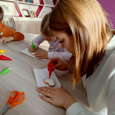 Ярким событием праздника стал мастер-класс по росписи печенья. Под чутким руководством Юлии Андреевны Астаповой, преподавателя кружка «Нетрадиционные техники рисования» МБУ ДО «ИМЦ», маленькие художники превращали домашнее печенье в настоящие произведения искусства. Дети были увлечены росписью, стараясь вложить свою любовь и благодарность в каждый завиток. Сердечки, цветочки, имена мам – самые разнообразные узоры появлялись на них, каждый из которых отражал уникальную связь между матерью и ребенком.